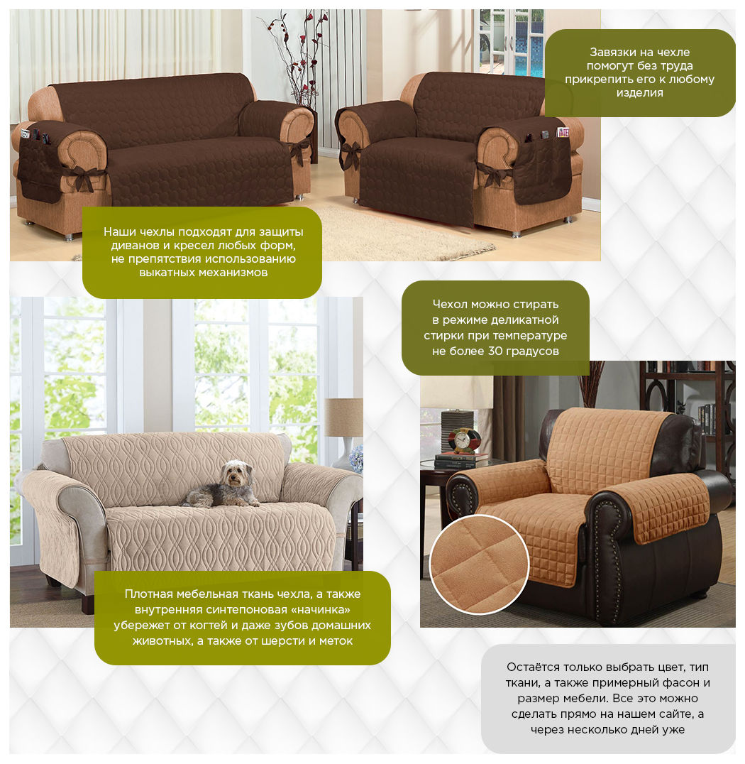 • наши чехлы подходят для защиты диванов и кресел любых форм, не препятствия использованию выкатных механизмов.